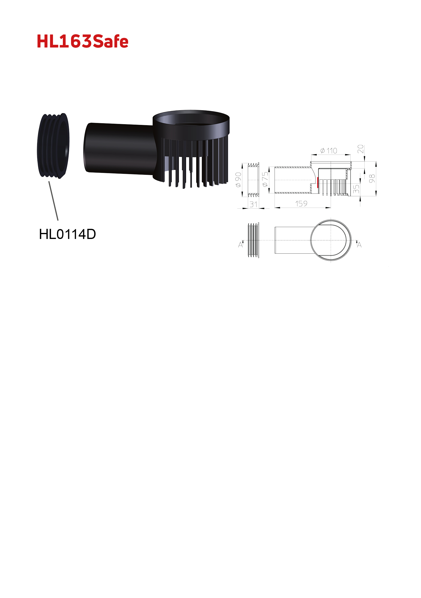 HL163Safe Entwässerungselement mit Notentwässerungsfunktion zu Attikaabläufe der Serie HL68. Einlaufelement für Umkehrdächer, zur Entwässerung der Abdichtebene unter der Wärmedämmung oder dem Belag.