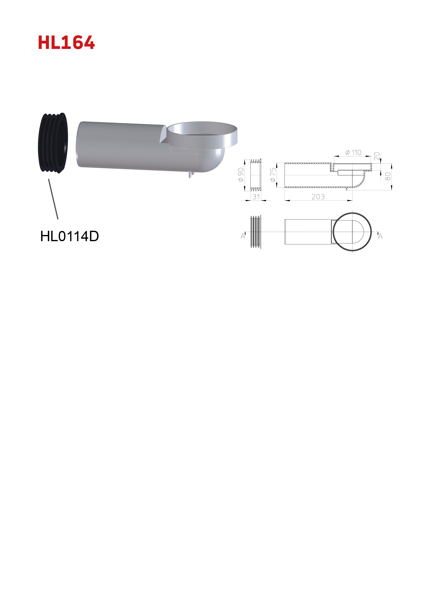 HL164 Einlaufelement dichtend zu Attikaabläufe der Serie HL68. Für z. B. Warmdächer.