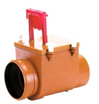 Valvola antiriflusso DN160 con chiusura automatica a battente della piastra di chiusura in acciaio inox e chiusura manuale supplementare, pozzetto d'ispezione